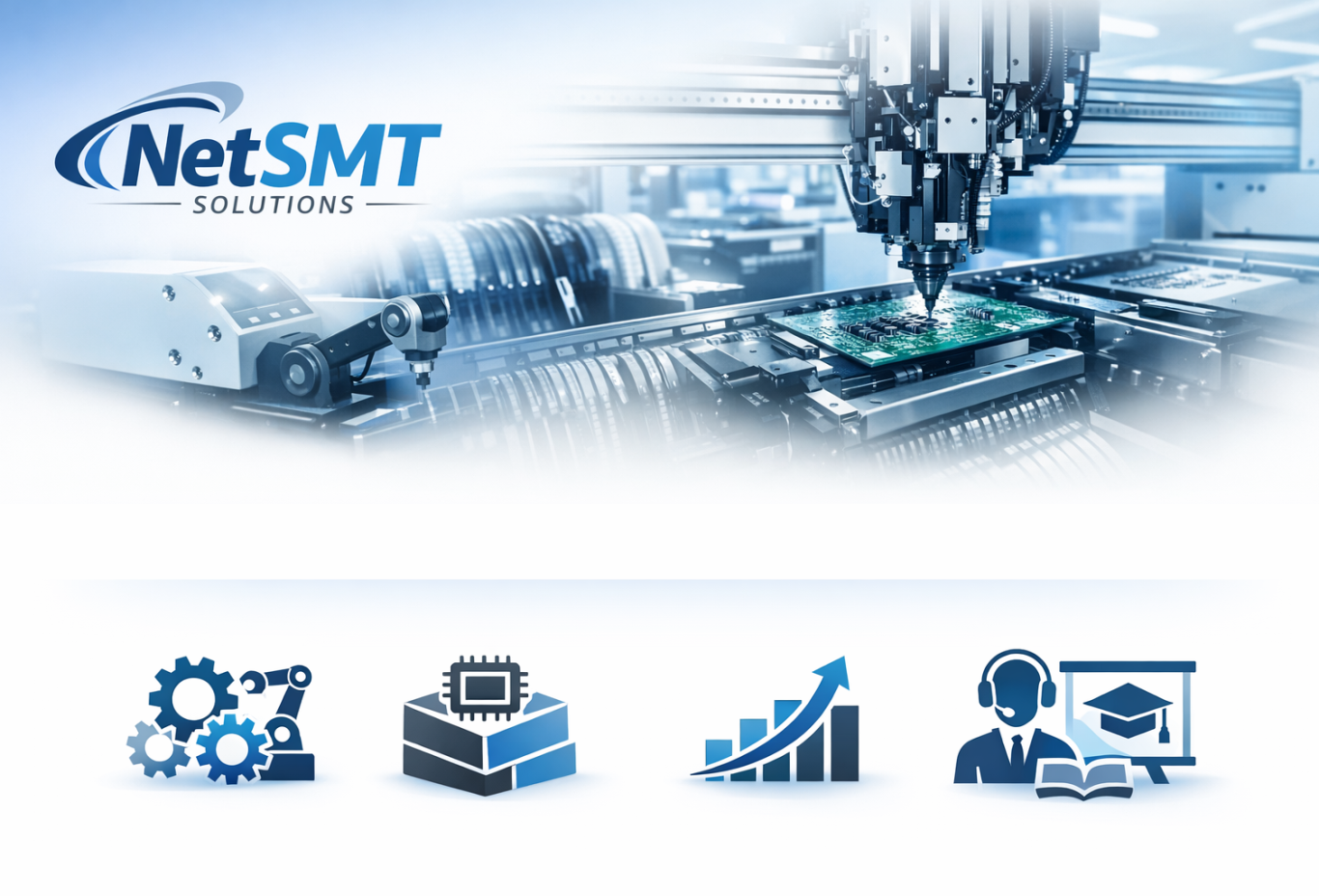 Moderne Elektronikfertigung erfordert Präzision, stabile Prozesse und leistungsfähige Maschinen. NetSMT Solutions unterstützt Unternehmen in der SMT-Fertigung und im Maschinenbau dabei, ihre Produktionsabläufe effizient, zuverlässig und wirtschaftlich zu gestalten.